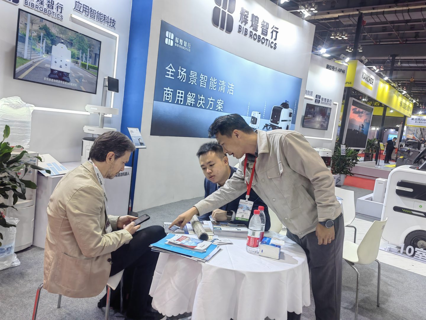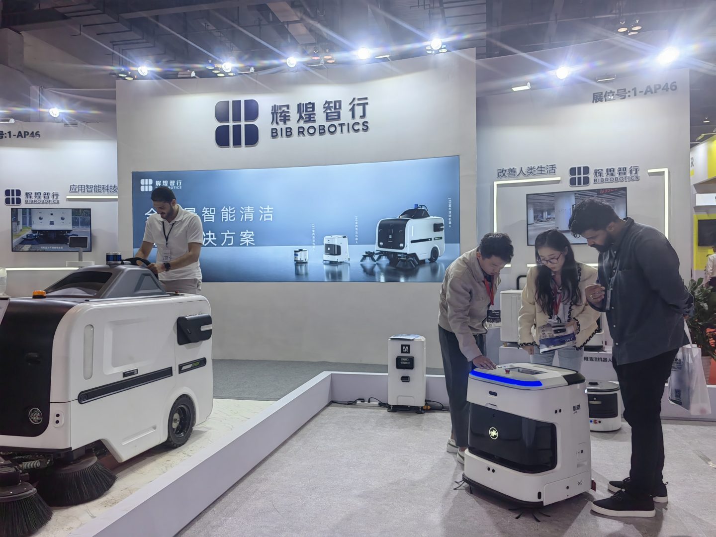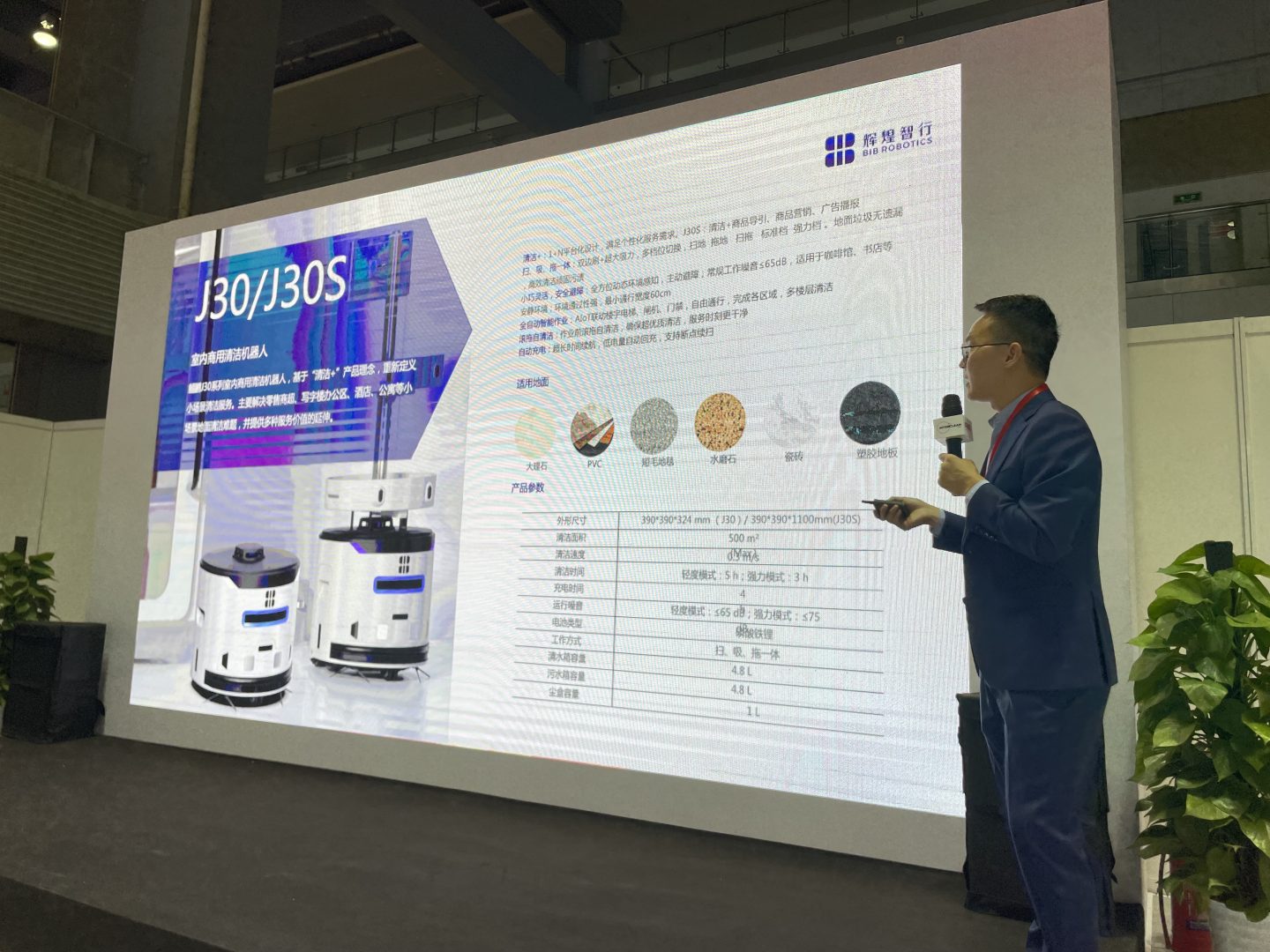 輝煌智行攜合作伙伴共同在本次展會上展出全場景智能清潔商用解決方案,J30、J40、J110三款產品全部亮相。展位以開放的空間展現形式,為觀眾提供沉浸式的參觀體驗。